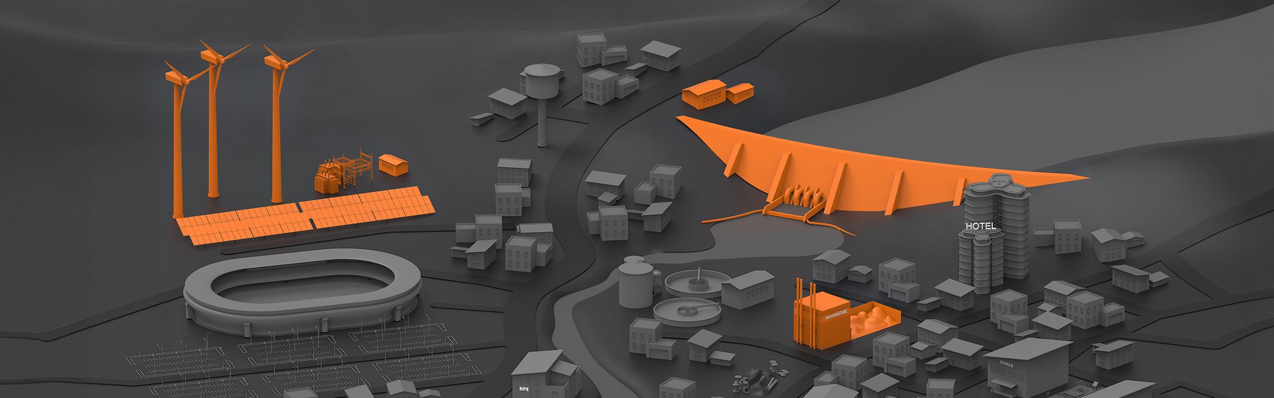 Als unabhängiges Ingenieurbüro entwickeln wir Konzepte für die Energieversorgung von Gemeinden, Industrie- und Verwaltungsgebäuden: angefangen bei der Planung von Energieerzeugungsanlagen mit Windkraft, Wasserkraft, Biomasse oder Solarenergie bis hin zur Gestaltung von Stromnetzen mit Mittelspannungsschaltanlagen, Trafostationen usw.