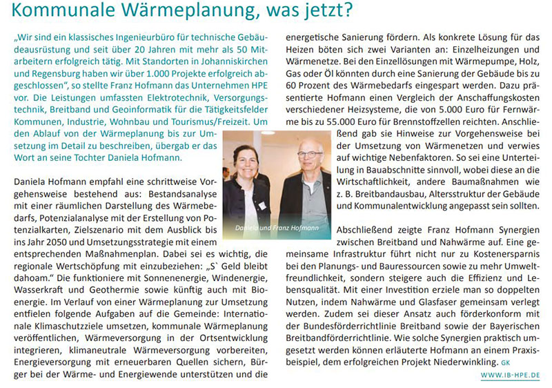 In der aktuellen Sonderausgabe der Bayerischen GemeindeZeitung ist ein Beitrag über unseren Vortrag beim diesjährigen EnergieForum zum Thema kommunale Wärmeplanung erschienen.
