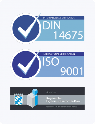 Unsere Qualitätszertifikate DIN ISO 9001 und DIN 14675 sind nicht nur Nachweise unserer Kompetenz, sondern auch ein Versprechen an unsere Kunden, stets die besten Praktiken und neuesten Standards in unserer Arbeit zu implementieren.